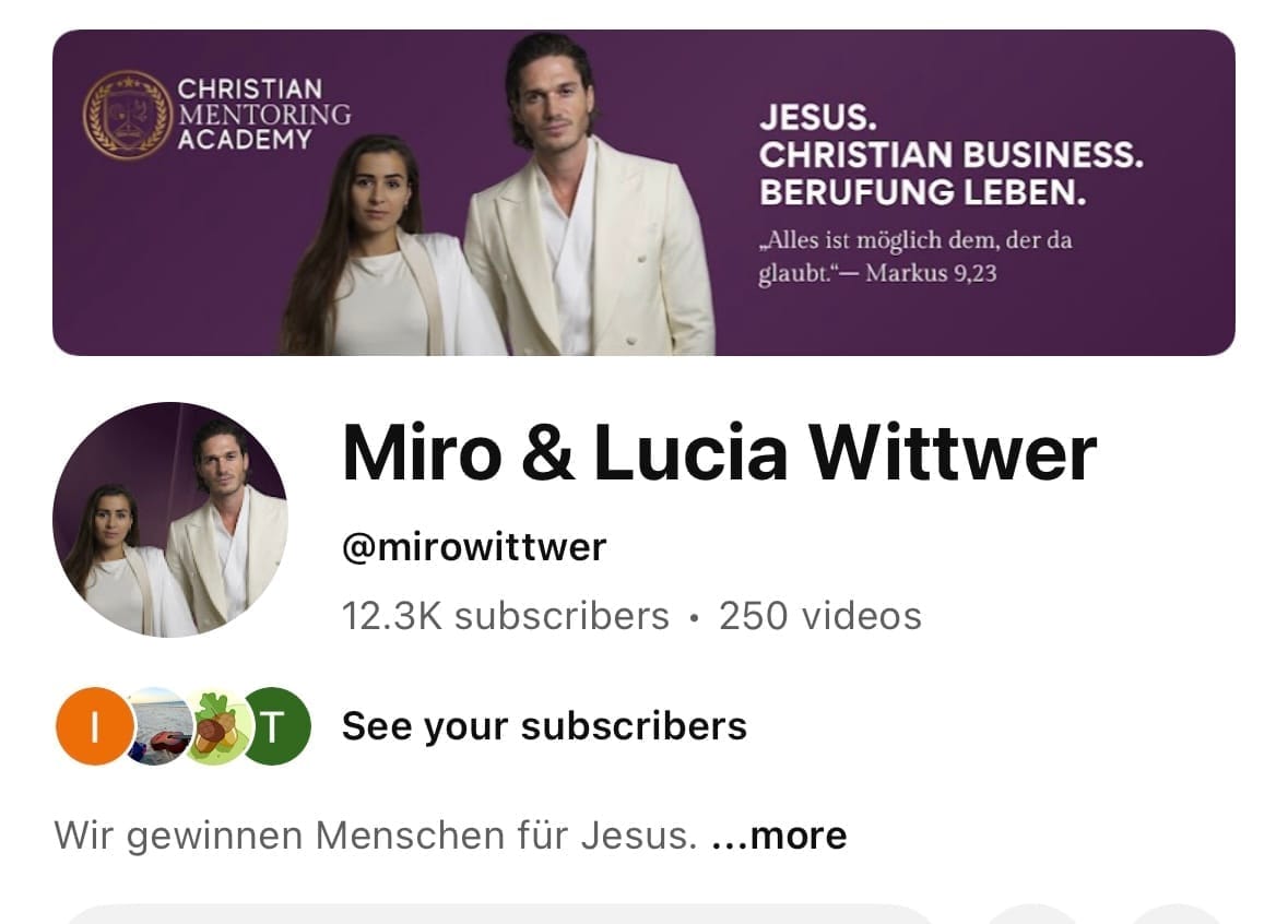 Miro hat mich mit wichtigen Werkzeugen ausgerüstet und mein Glaubensleben auf eine neue Ebene gehoben. Er ist ein absolut kraftvoller Lehrer. Sein Wirken ist fruchtbar und eindrücklich. Gemeinsam konnten wir mein Verständnis von der Wahrheit und meine Beziehung zu Jesus um ein Vielfaches intensivieren und vertiefen.